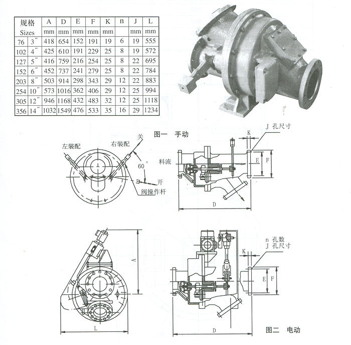 SK兩路輸送間有8個規格,其中76mm(3")至152.4(6-)的閥與40號壁厚系列的管子內徑扣匹配,203mm(8")到3561111n(14")的閥與30號壁厚系列的升子內徑相匹配 .SK 閥操作桿左裝和右裝兩種型式有手動及電動的兩種操作、溫度可達204℃(400F).