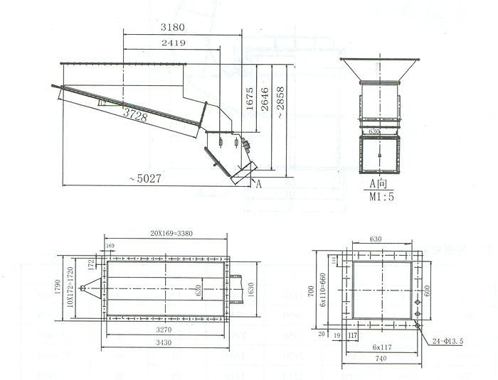 2、充氣出料溜子:充氣量285m3/h,風If 500mm H20